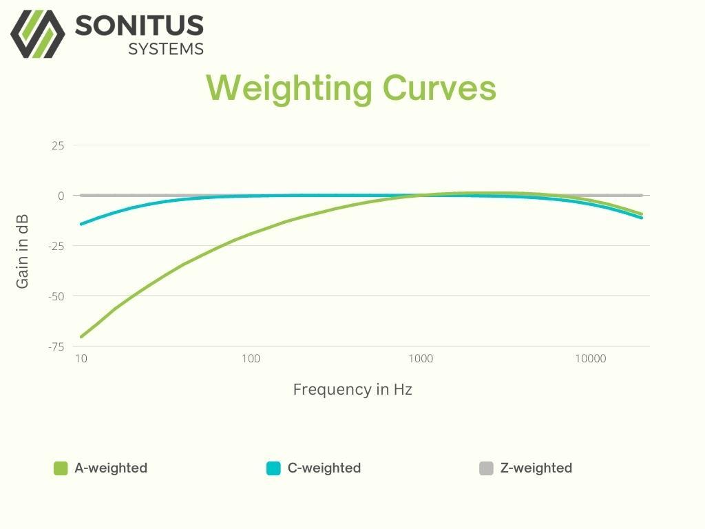 The chart below shows the level adjustment per frequency band for different weightings.