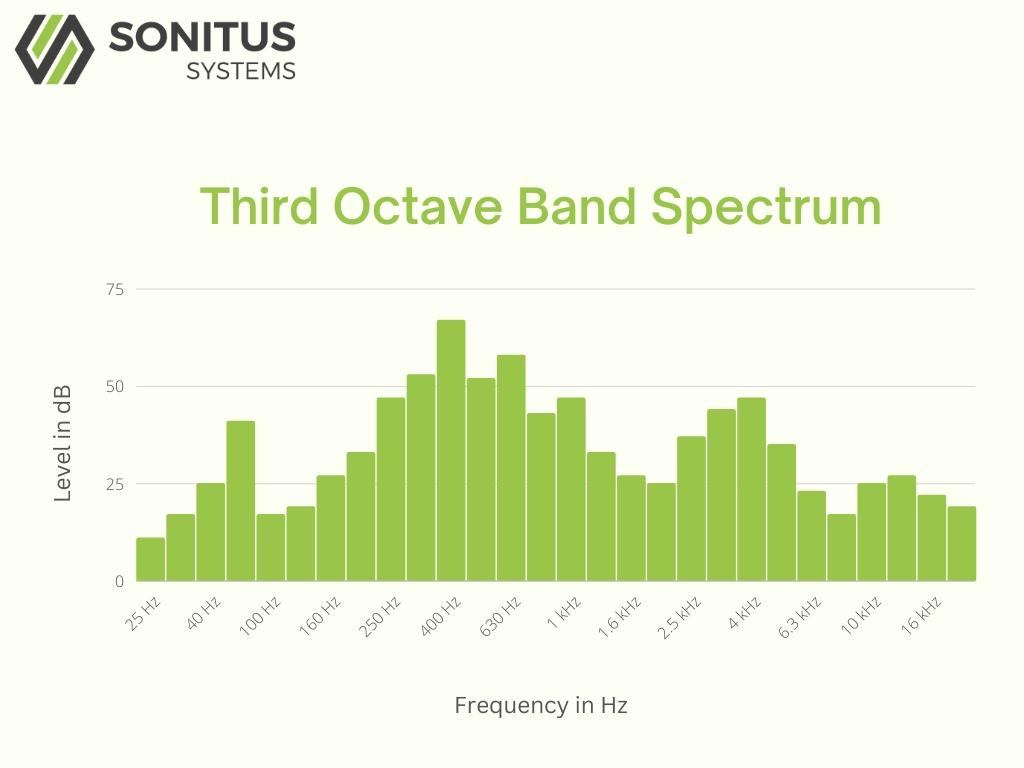 Third Octave Band Filters are very similar to the Octave Band filters. The difference is that each of the Octave Bands is split into three, giving a more detailed description of the frequency content of the noise.