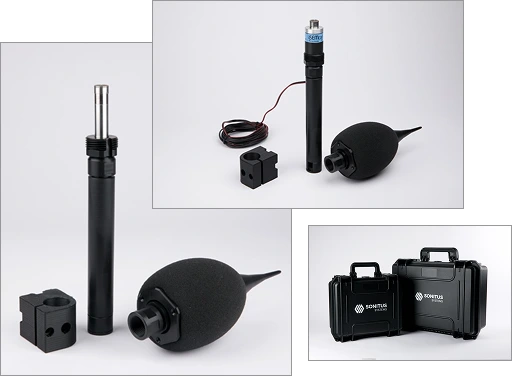 You can calibrate the EM2030 easily in the field using an acoustic calibrator. Simply pop the weather protection kit off the top of the microphone and place the acoustic calibrator over the top.